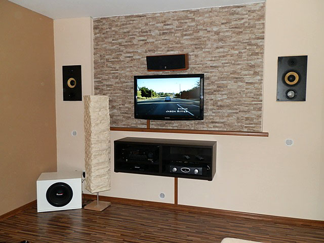 Po přestavbě interiéru pořád překážely reprosoustavy, proto jsem se rozhodl použít vestavěné reproduktory. Protože jsem nenašel dostatečně výkonné vestavby, padla volba na domácí výrobu. Jelikož jsem byl velice spokojený s reproduktory IRB 20/100/01.8 , nepřemýšlel jsem o jiných. Ozvučnice je netradičně cihlová o objemu 27 litrů, vytlumená rounem 45 mm. Jako pohledová strana byla použita MDF deska 22mm s basreflexem. Výhybka 2WH 3.0–100,8 byla po zatlumení výškového reproduktoru a po osazení kompenzace ideální. Se zvukem jsem naprosto spokojený jak při poslechu hudby tak i při sledování filmu.