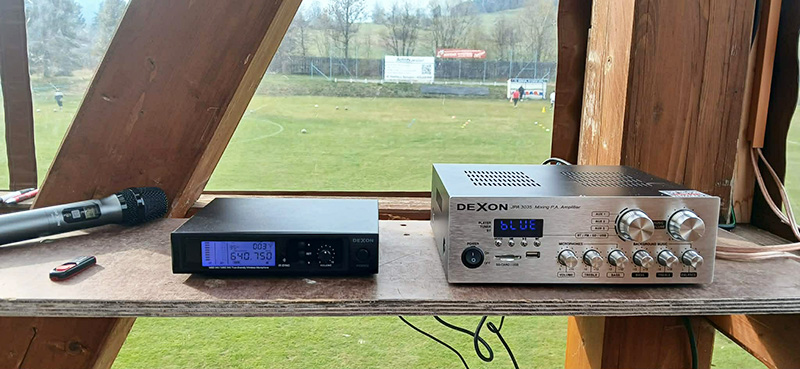 Vaší sestavu Dexon JPA 3035 rozhlasová ústředna + MBD 840 bezdrátový mikrofon diverzitní ruční + DEXON Sloupová reprosoustava černobílá DPT 612, 210011 2 ks, jsem zakoupil pro fotbalový klub TJ Sokol Stará Ves za účelem komentování fotbalových zápasů a reprodukávání hud­by.