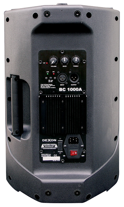 Na zadní straně pasivní verze je terminál s dvěma konektory Speacon a typovým štítkem. U aktivní verze zde nalezneme blok aktivního zesilovače, který je dvoukanálový a budí basový i výškový reproduktor zvlášť a používá tak aktivního dělení pásem. Tato vlastnost je tak skvěle využita k velmi výbornému sladění reprosoustavy, což dokazuje i velmi dobrý zvuk. Zesilovač, kterým jsou aktivní verze buzeny, disponuje dále nastavením celkové hlasitosti, jakož i nastavení dílčích hlasitostí pro výškový a pro basový reproduktor, to nám připomíná vlastně frekvenční korektor. Vstup, který je možné provést jedním z konektorů XLR je přepínatelný mezi linkovou a mikrofonní úrovní. Součástí zesilovače je i vestavěný limiter, jeho funkce je opět na zadním panelu indikována, stejně jako zapnutí reprosoustavy.
